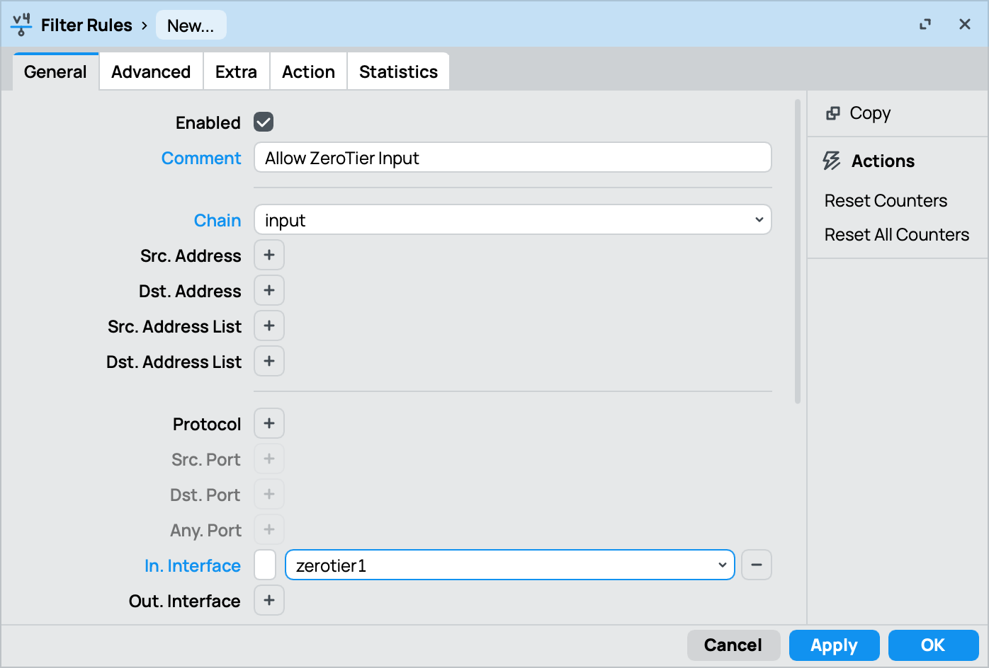 In. Interface: [지정한 ZeroTier 인터페이스 이름]