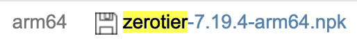 위의 링크에서 자신의 RouterOS의 버전에 맞는 ZeroTier 패키지(.npk) 파일을 다운로드합니다.